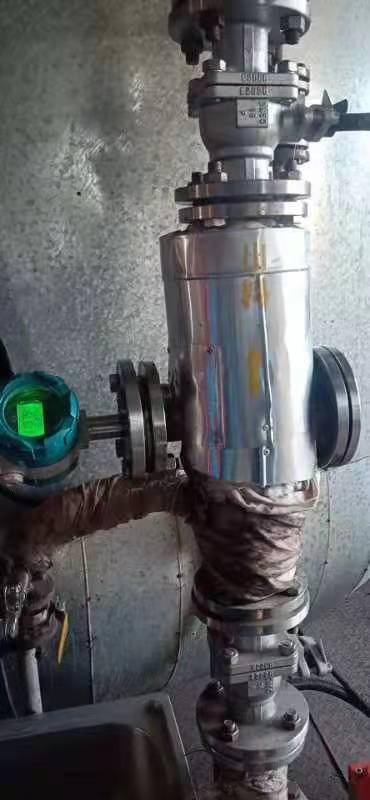 項目背景: 山西大同同位素車間密度計測量,介質比較特殊,介質溫度比較高,容易產生氣泡,介質比較容易附著到管道中 技術措施: 1.根據測量介質流量設計特制的管道形式,降低密度計探頭在測量管段的流速,提高測量精度; 2.在音叉體的前端與后端設相應的直線管段,以提高介質流態的穩定性; 3.管道上下端各安裝1個閥門,可以控制管內流速及方便檢修; 4.能夠定期清洗音叉體,可外接壓力沖洗管。